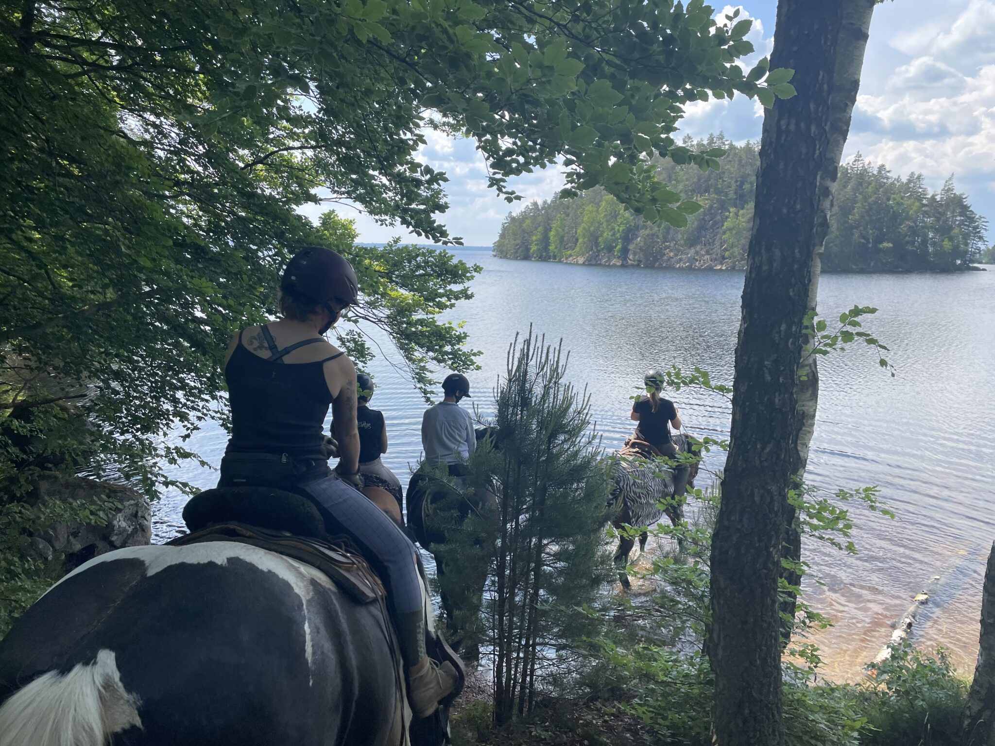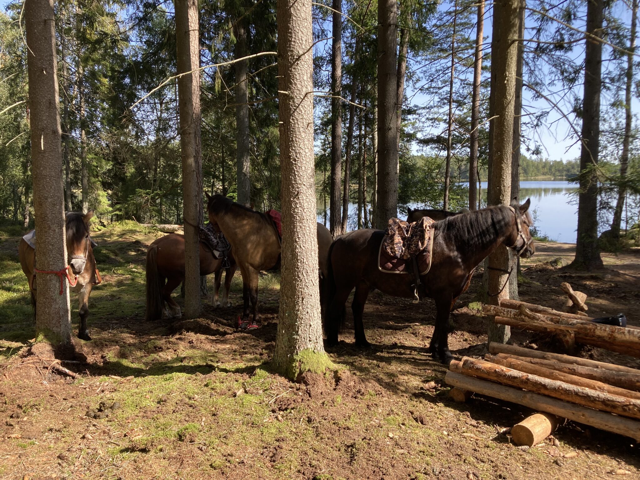 Tag 1: Wir starten mit der Tour auf unserem Hof, nachdem wir gemeinsam die Pferde bereit gemacht haben. Unser Weg führt uns zunächst nach Urshult, dann nach Dunsmåla und weiter auf eine Halbinsel mitten im Åsnen. Dort befindet sich auch unser Rastplatz. Nach der Pause geht es weiter zu unserem Ziel in Ålshult. Dort erwartet uns eine kleine Fika nachdem wir die Pferde versorgt haben. Nach der Stärkung bleibt Zeit für einen Saunagang, einen Spaziergang in der schönen Umgebung oder einfach nur zum Entspannen auf dem herrlichen Toftahult.